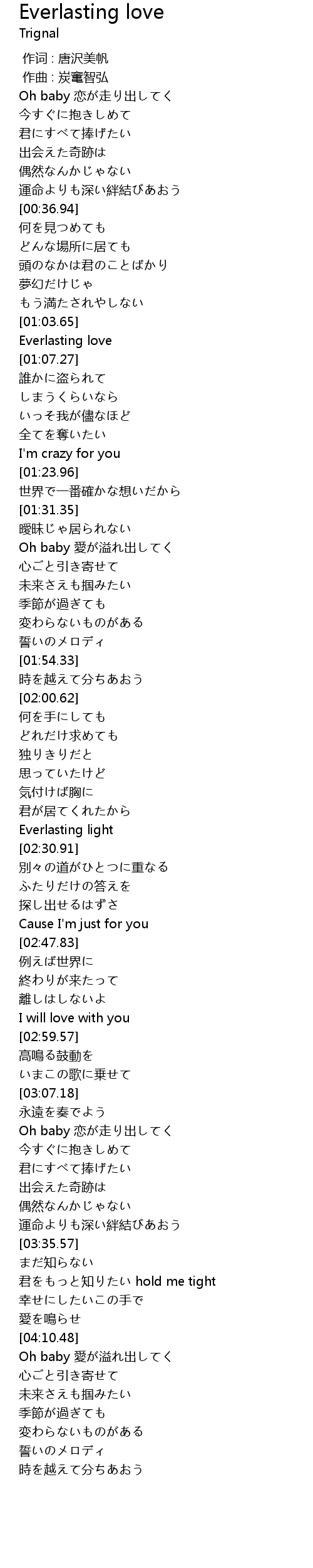 | [01:04.80] | Everlasting love |