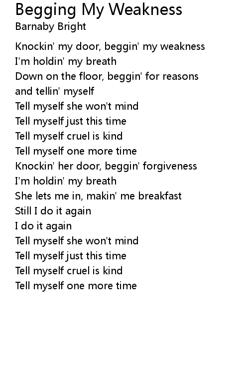 | Knockin' my door, beggin' my weakness | |