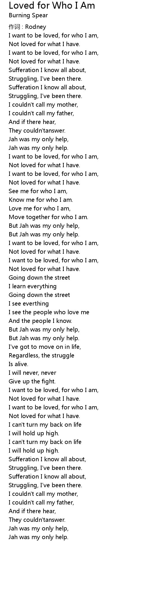 | But Jah was my only help. | |
