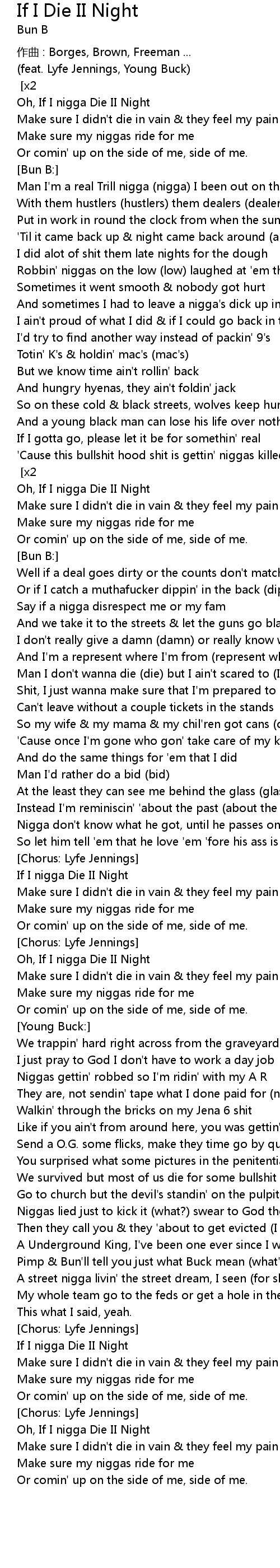 | Man I don' t wanna die die but I ain' t scared to I ain' t scared to | |