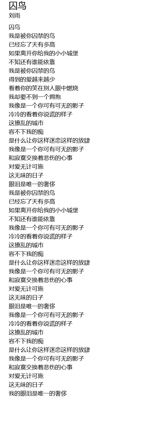 | [00:48.50] | 我是被你囚禁的鸟 |
