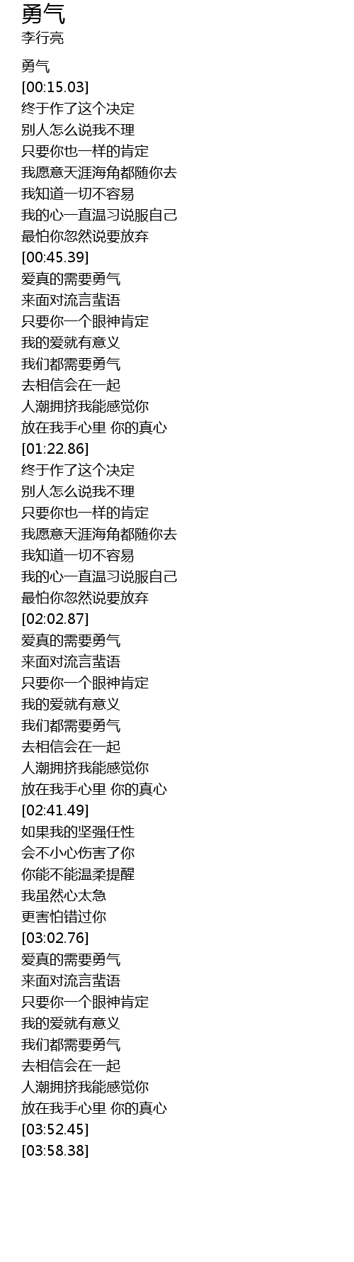 | [00:47.44] | ài zhēn de xū yào yǒng qì |