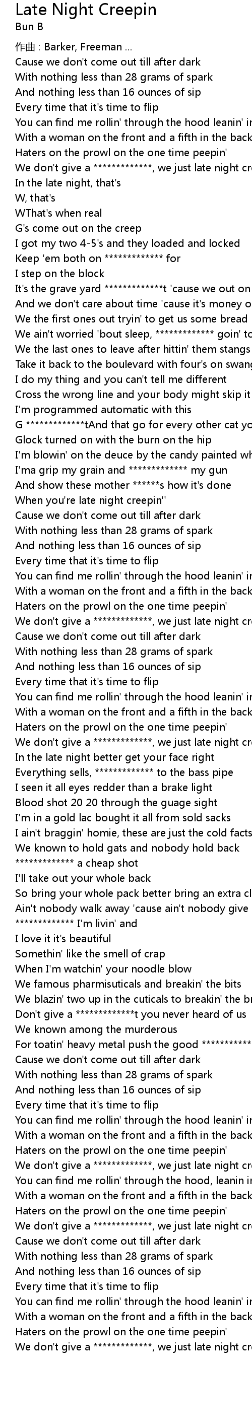 | We don't give a *************, we just late night creepin' | |