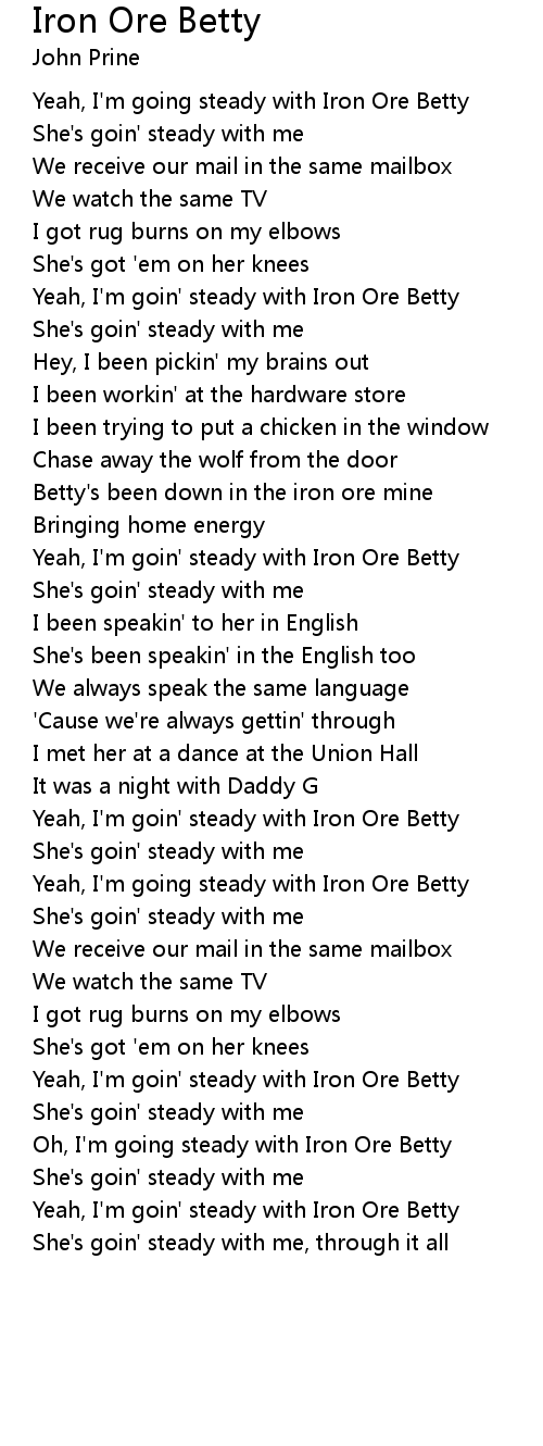 Yeah, I'm goin' steady with Iron Ore Betty |