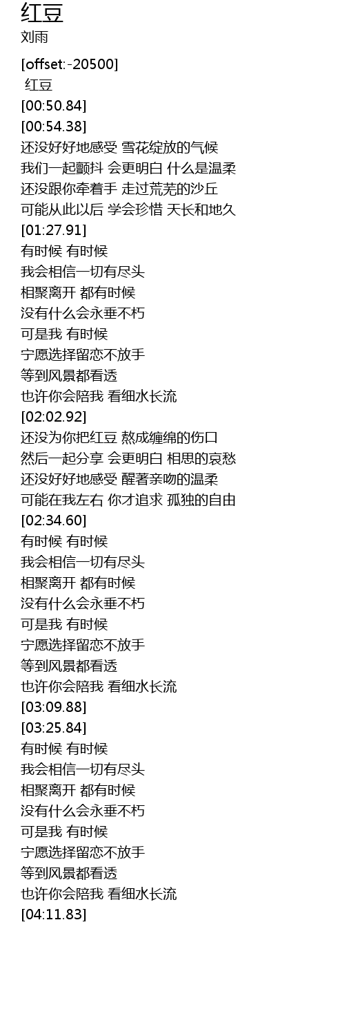 | [02:03.80] | 还没为你把红豆 熬成缠绵的伤口 |