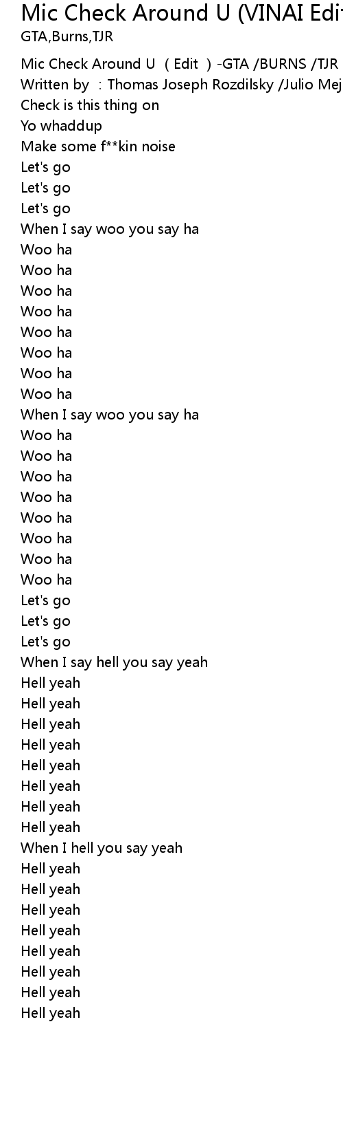 | [00:00.00] | Mic Check Around U (Edit )-GTA /BURNS /TJR |