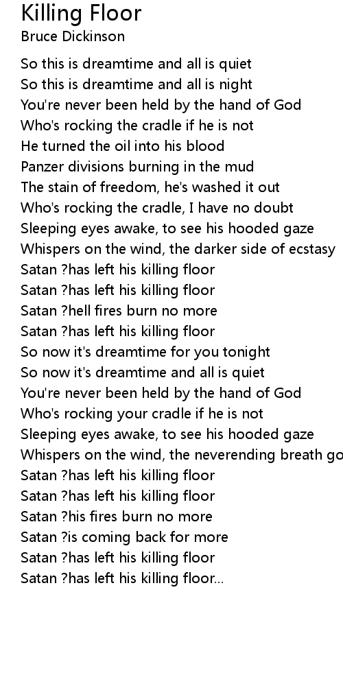 Satan ?has left his killing floor |