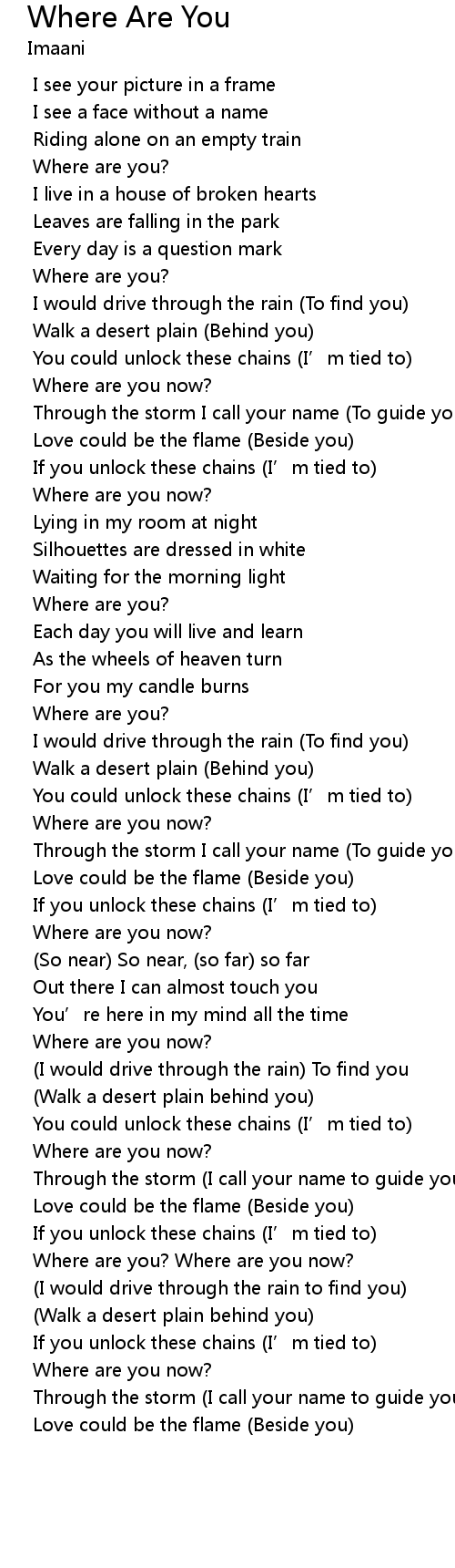| Song | Where Are You |