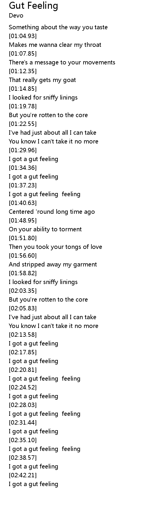 I got a gut feeling feeling |