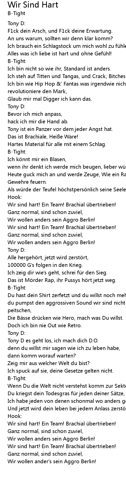 | Song | Wir Sind Hart |