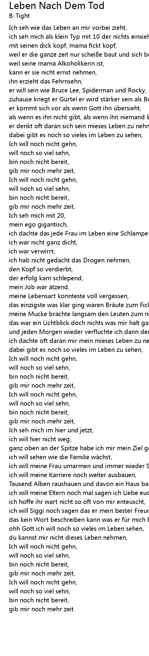 | ich dachte oft daran mir mein mieses Leben zu nehmen, | |