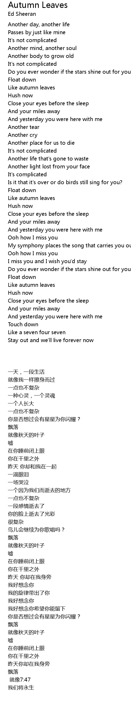 | [00:41.57] | Like autumn leaves |