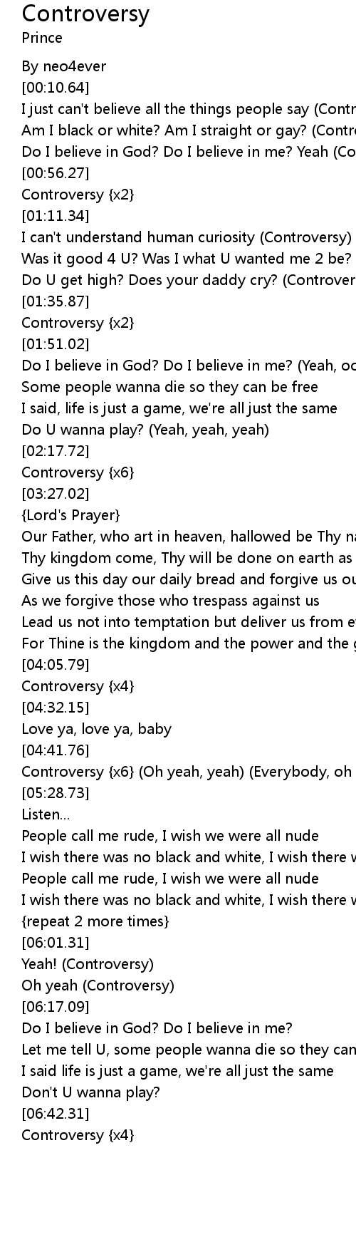 Do I believe in God? Do I believe in me? Yeah (Controversy) |
