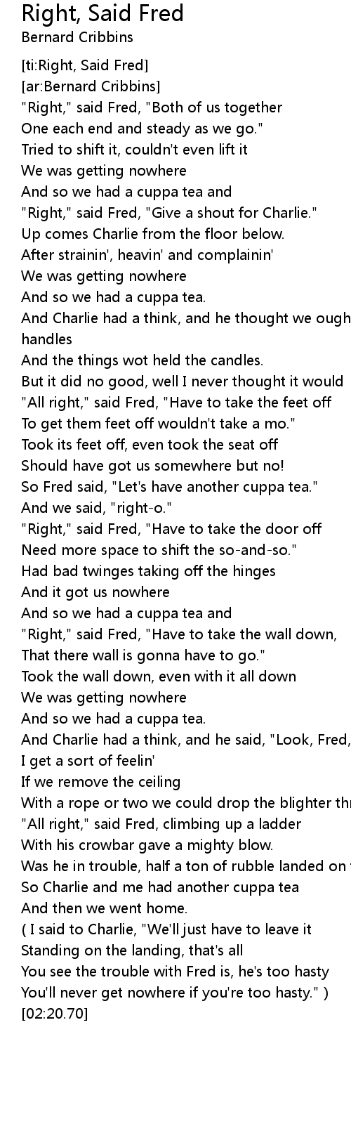 [ti:Right, Said Fred] |