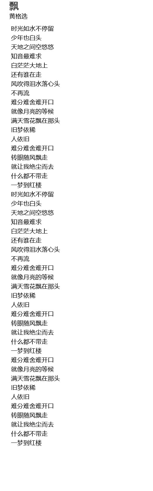 | [01:42.379] | 转眼随风飘走 |