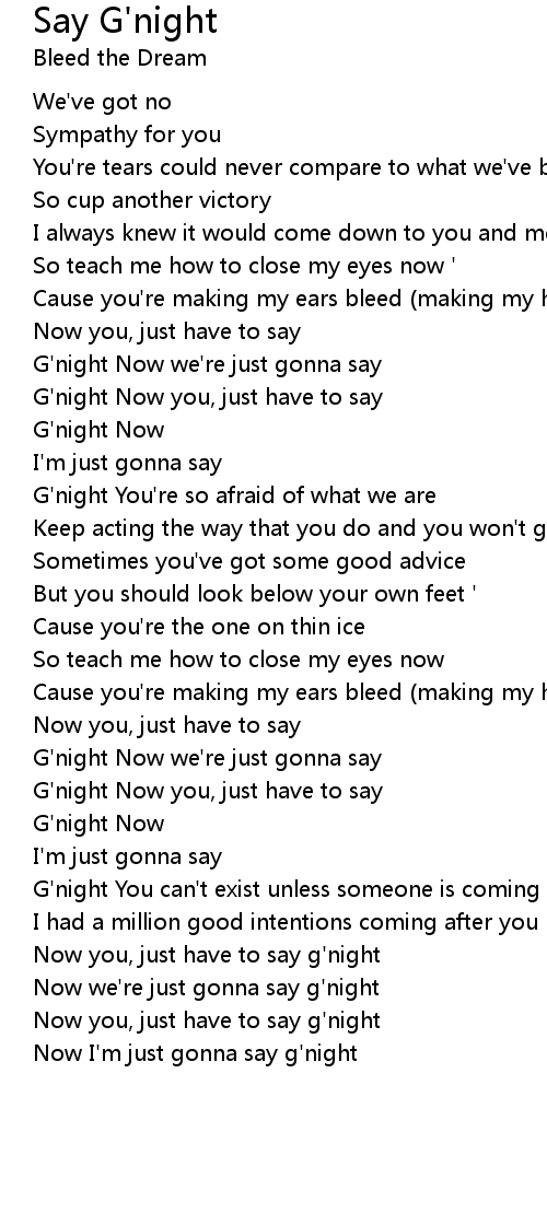 G'night Now you, just have to say |