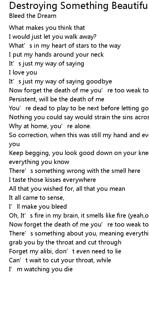 | Nothing you could say would strain the sins across my fixing stitches | |