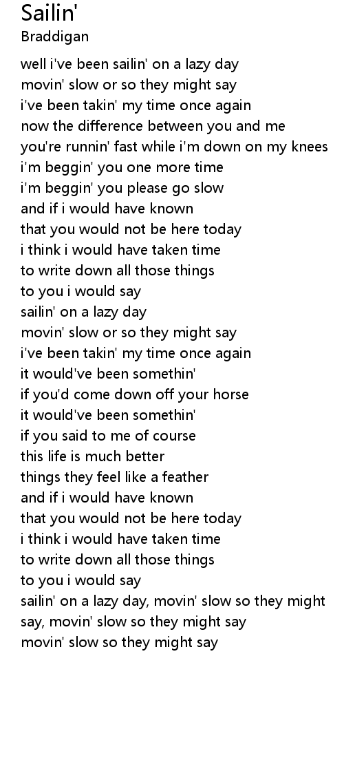 well i've been sailin' on a lazy day |