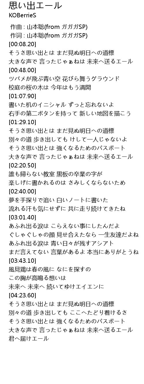 | [04:23.70] | そうさ思い出とは まだ見ぬ明日への道標 |