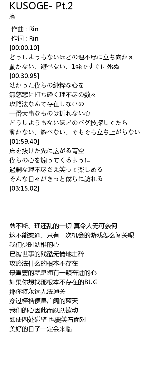 | [00:00.03] | zuo ci : Rin |