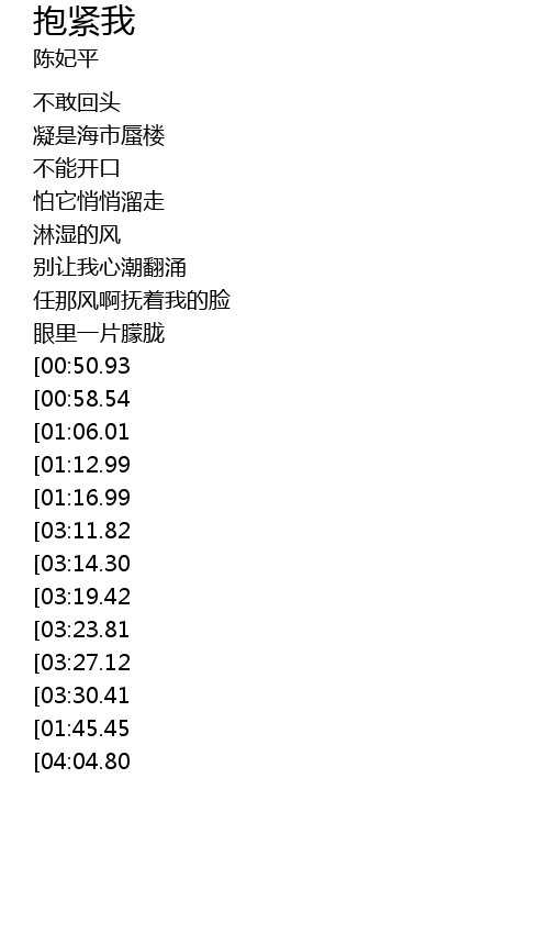 | [03:42.10][03:11.82][01:52.78][01:22.15] | 请你抱紧我 |