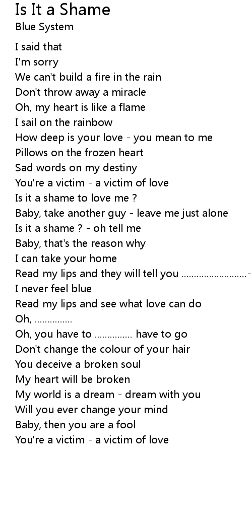 Is it a shame ? - oh tell me |