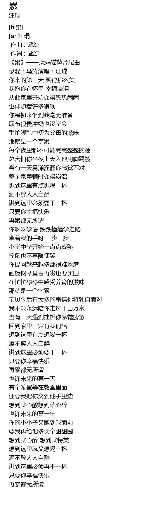 | [00:01.241] | 《累》——虎妈猫爸片尾曲 |