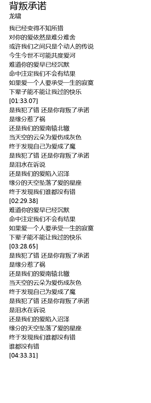 | [01:33.99] | 是我犯了错 还是你背叛了承诺 |