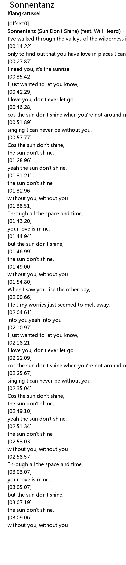 Sonnentanz (Sun Don't Shine) (feat. Will Heard) - Klangkarussell |