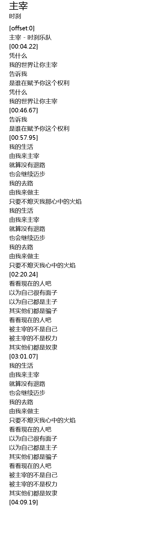 | [00:00.84] | 主宰 - 时刹乐队 |