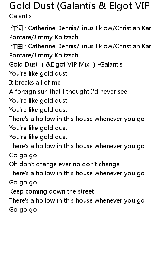 | [00:00.00] | Gold Dust (&Elgot VIP Mix )-Galantis |