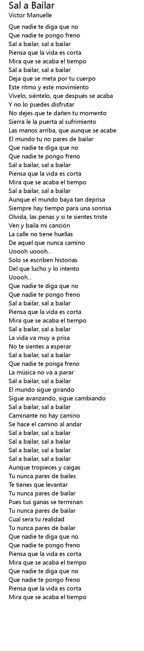 | Song | Sal a Bailar |