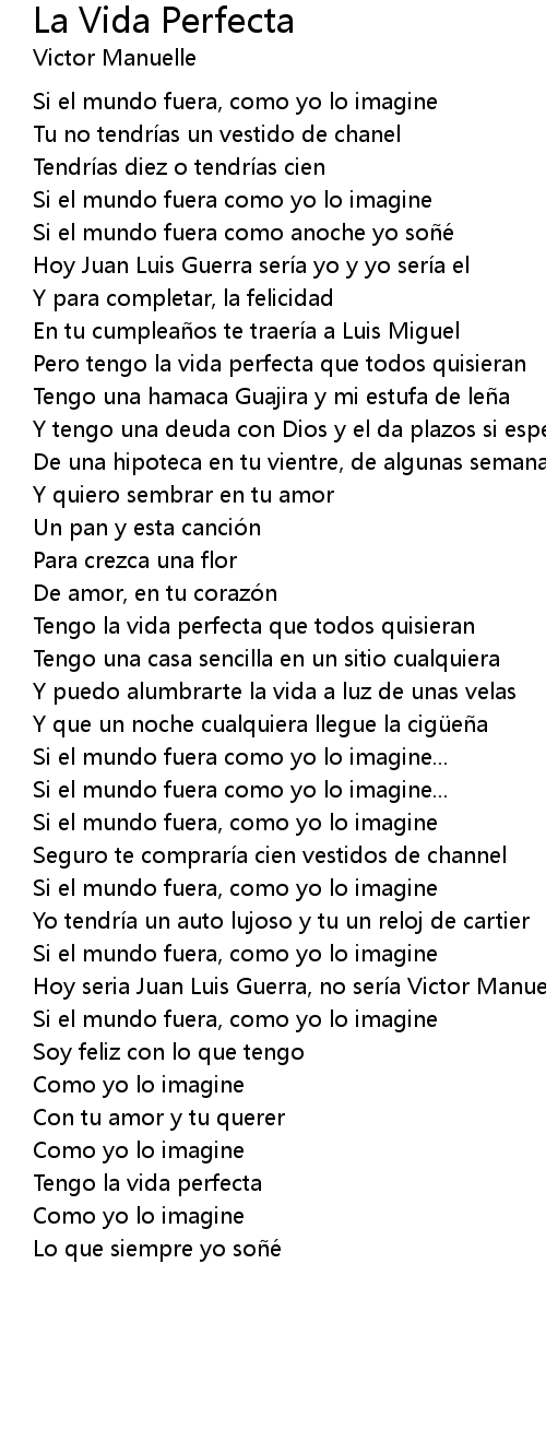 | Song | La Vida Perfecta |