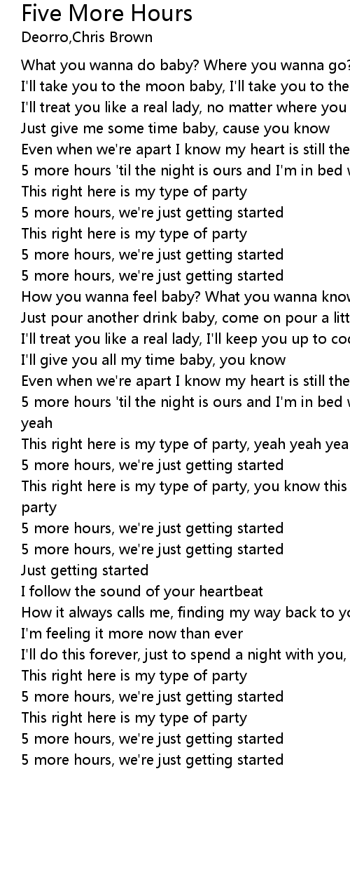 5 more hours 'til the night is ours and I'm in bed with you, this is yeah |
