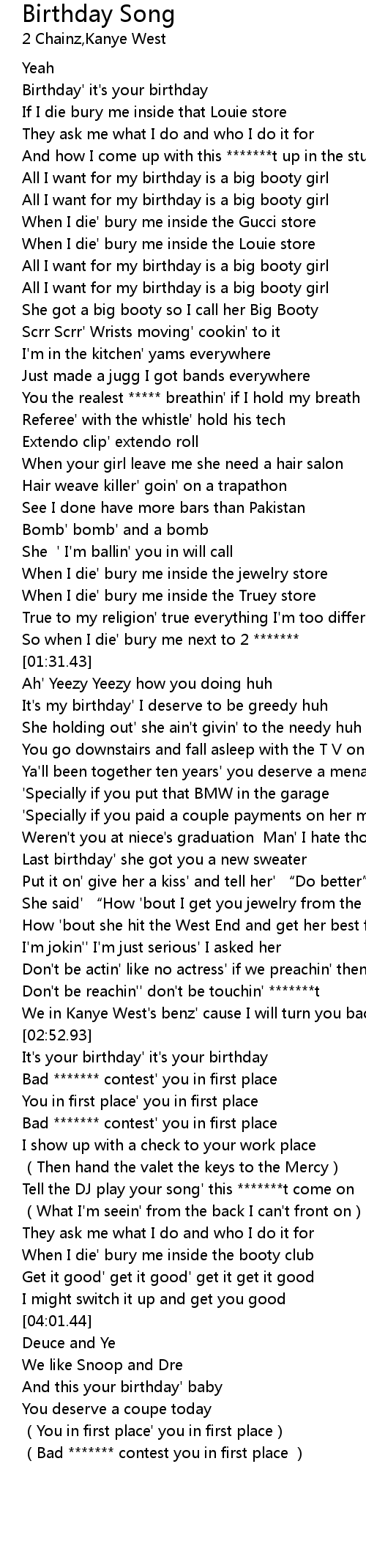 | [00:03.63] | Birthday' it's your birthday |
