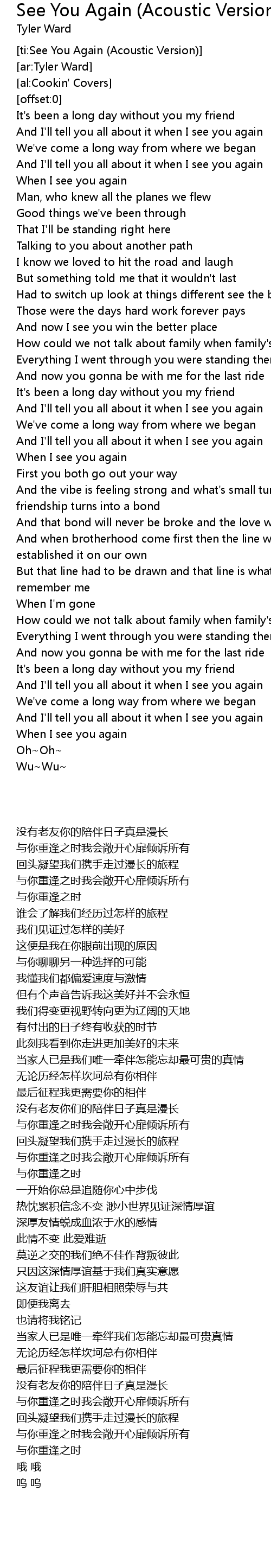 [ti:See You Again (Acoustic Version)] |