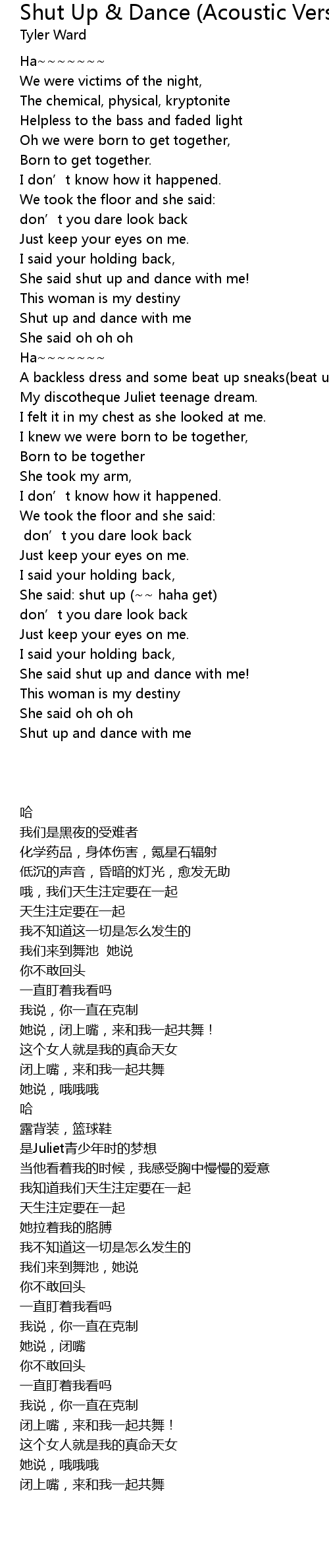 | [00:54.630] | She said shut up and dance with me! |