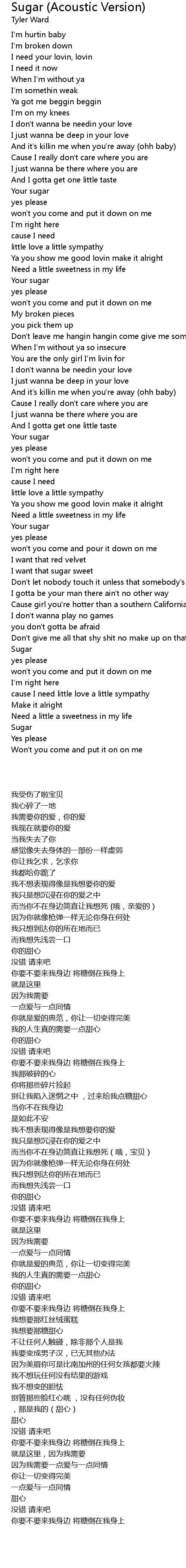 I want that sugar sweet |