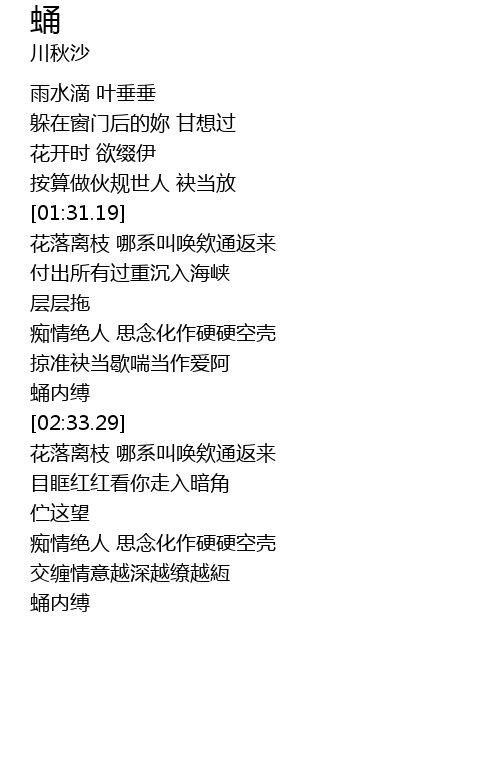 | [01:34.33] | 花落离枝 哪系叫唤欸通返来 |