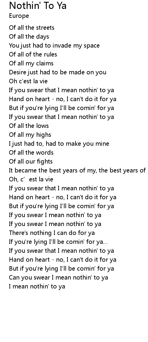 | I mean nothin' to ya |