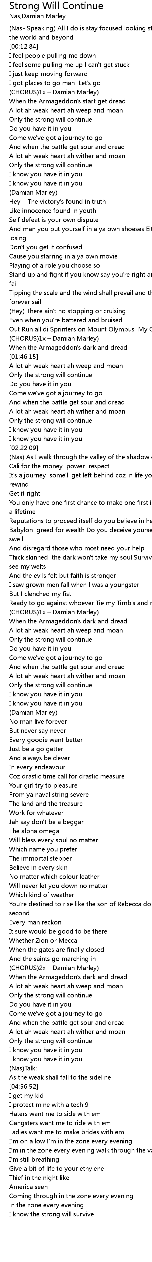 | [03:00.21] | CHORUS 1x Damian Marley |
