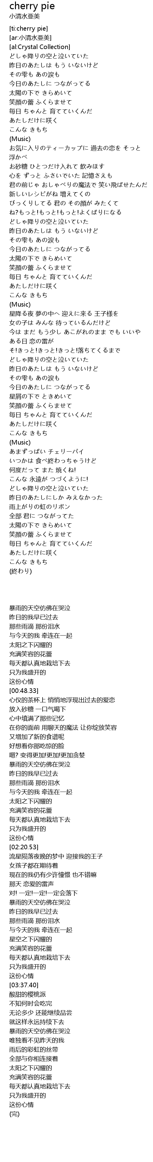 | [03:50.59] | あまずっぱい チェリーパイ |