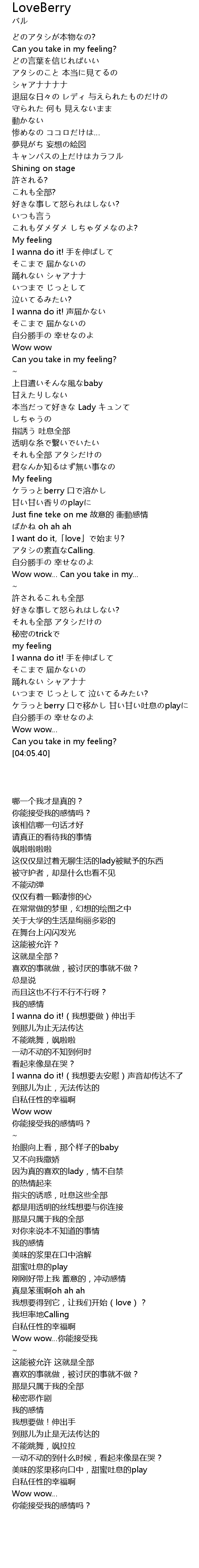 | [03:49.68] | ケラっとberry 口で移かし 甘い甘い吐息のplayに |
