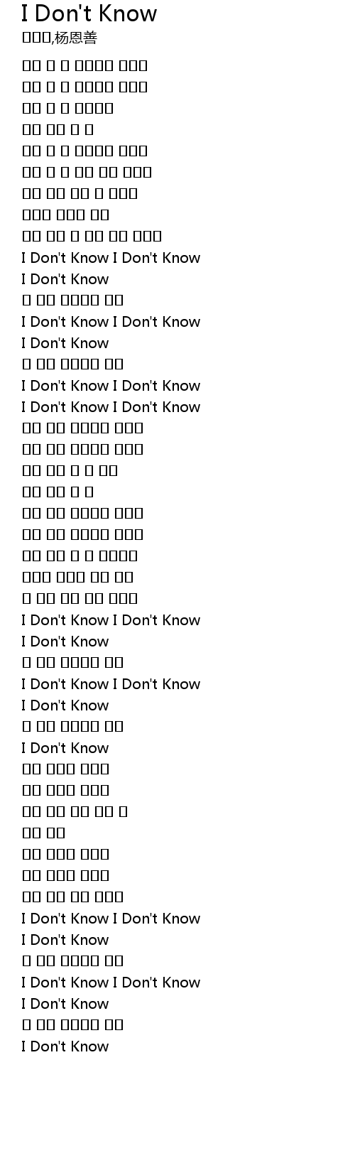 | I Don' t Know I Don' t Know | |