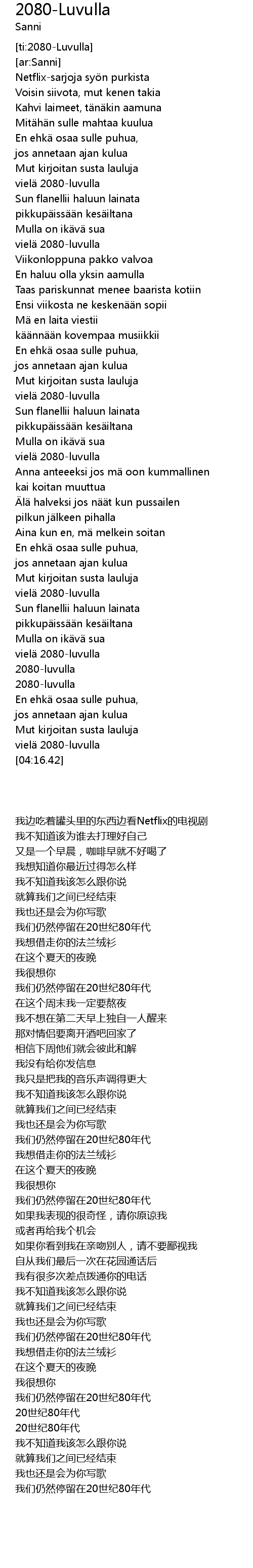 | [03:31.46] | 2080luvulla |