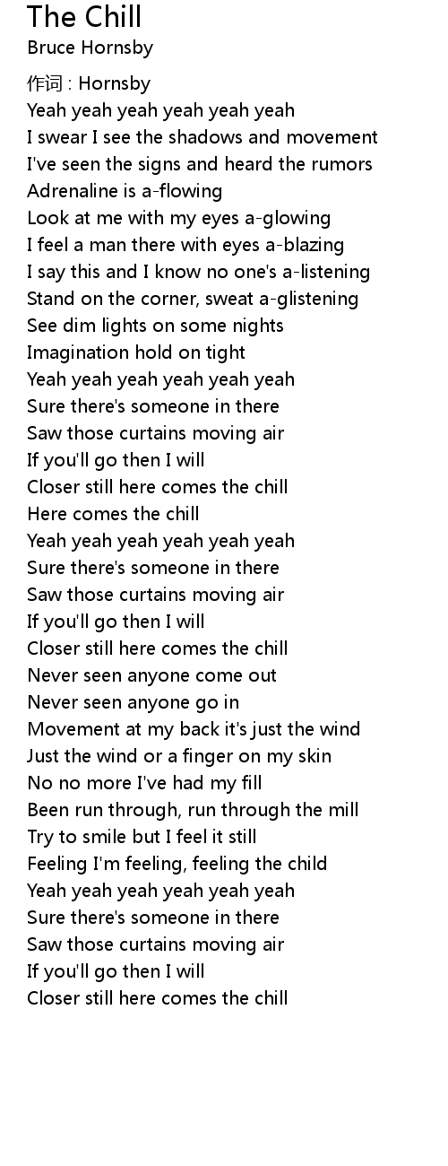 | Closer still here comes the chill |