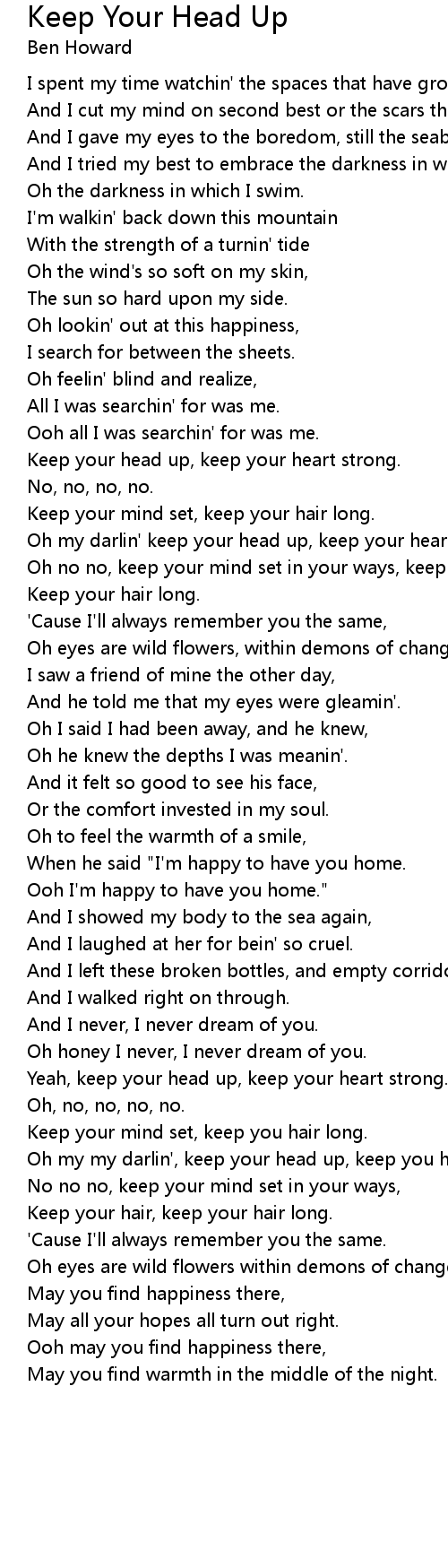 Oh my my darlin', keep your head up, keep you heart strong. |