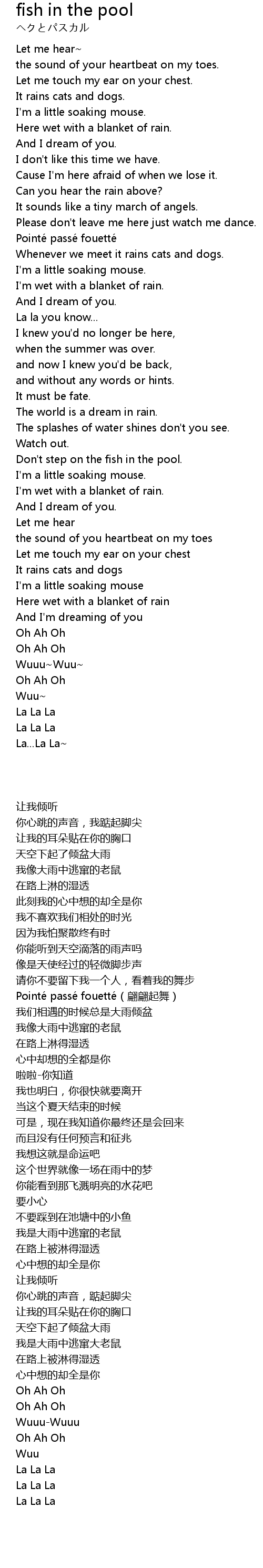| [00:15.580] | I' m a little soaking mouse. |