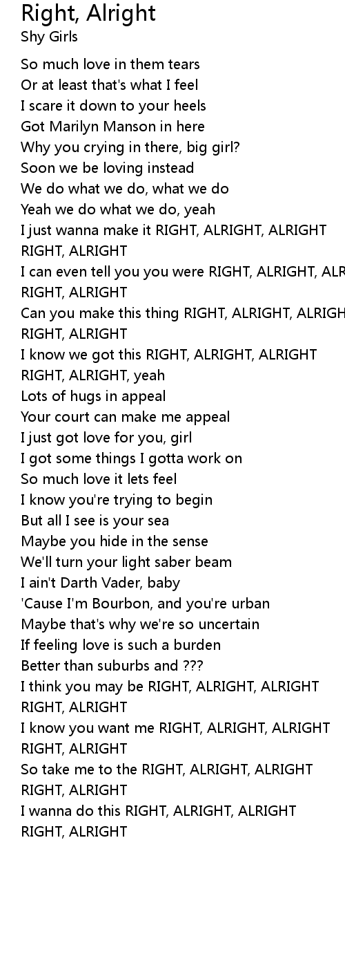 | I just wanna make it RIGHT, ALRIGHT, ALRIGHT | |