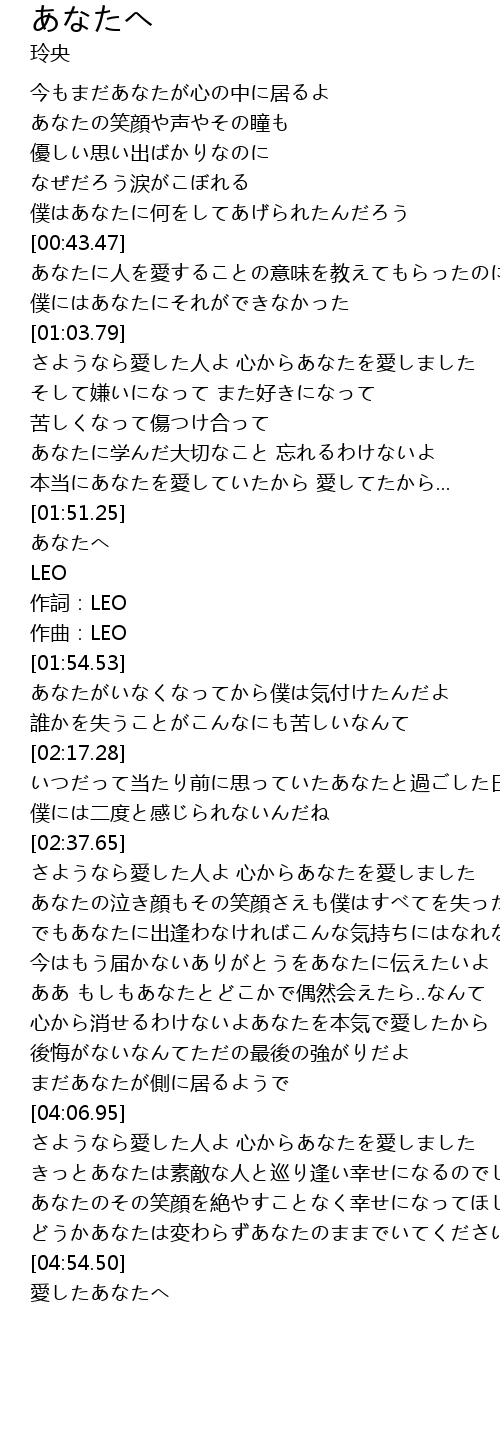 | [04:07.64] | さようなら愛した人よ 心からあなたを愛しました |